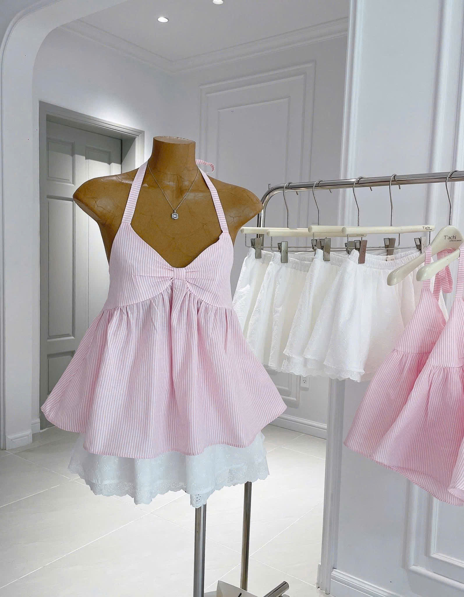 Áo yếm thắt nơ cổ sau phù hợp mix match với các loại quần jean, khaki, short khác nhưng vẫn tôn lên được phong cách riêng biệt.