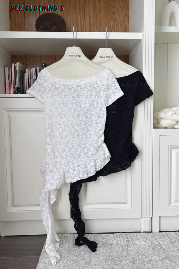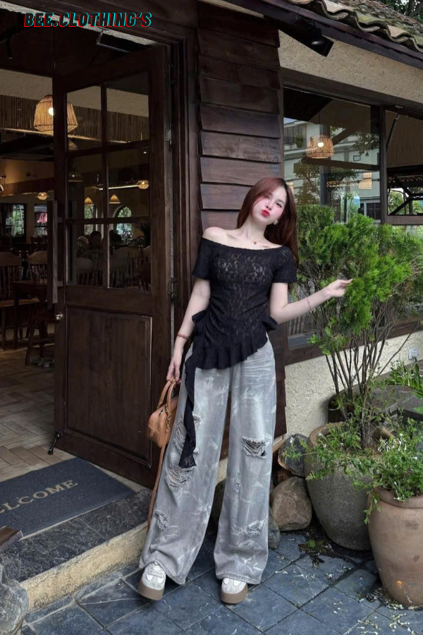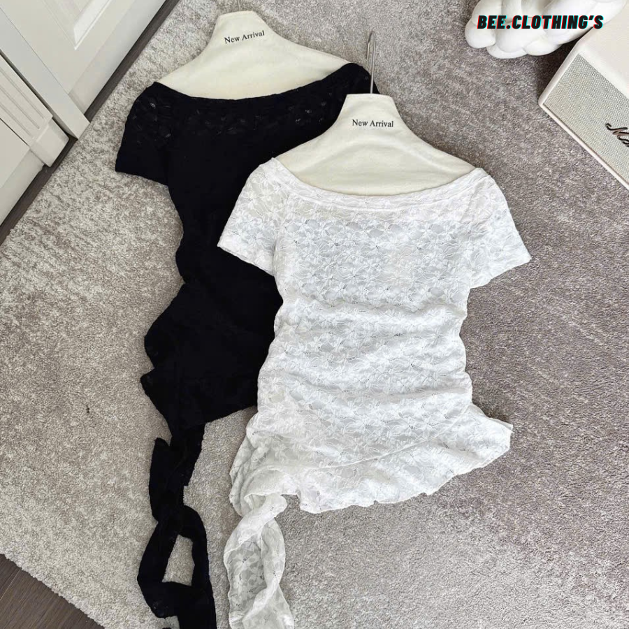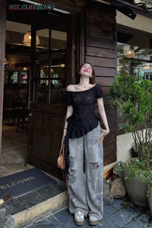 Chiếc áo ren đen tua rua là lựa chọn hoàn hảo cho những cô nàng yêu thích sự quyến rũ pha chút phóng khoáng. Thiết kế cổ thuyền lệch vai, phối dây bèo nhẹ nhàng giúp khoe khéo bờ vai và xương quai xanh thanh mảnh. Phần ren mềm mại, tua rua bay nhẹ, tạo hiệu ứng chuyển động cực hút mắt khi bạn bước đi.