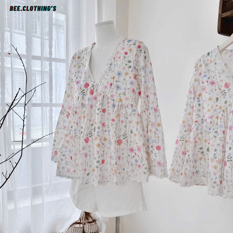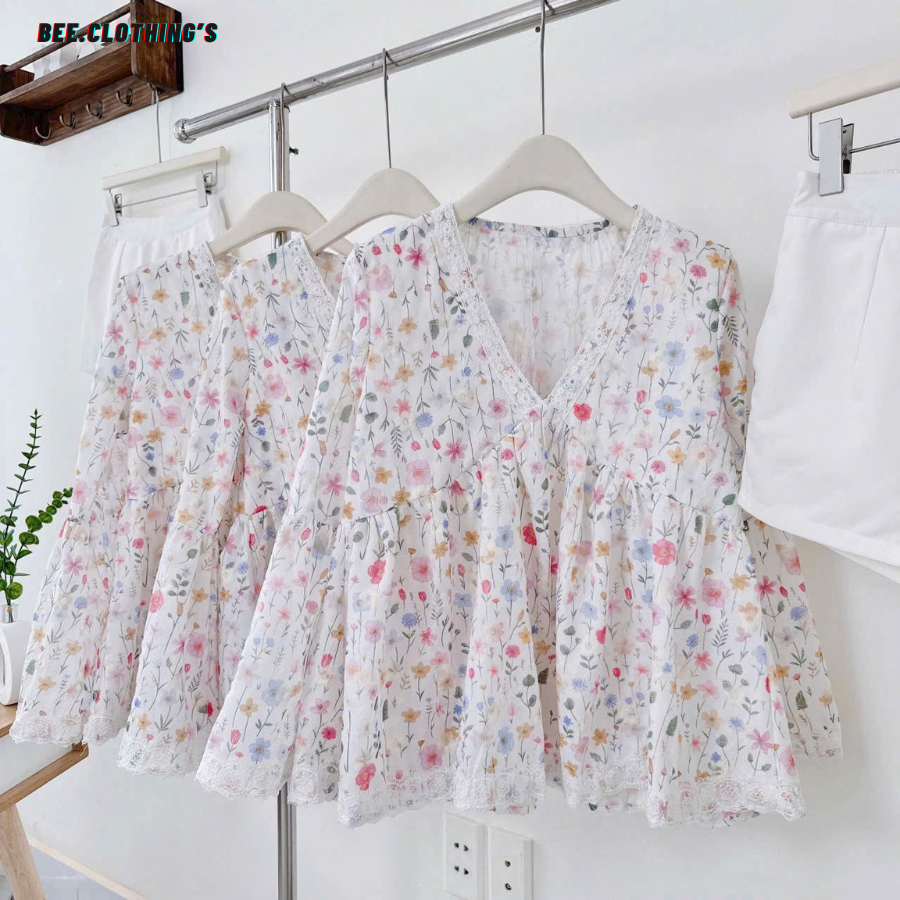 Chiếc áo babydoll được thiết kế từ chất xô thô mềm, thoáng mát và thêu hoa tinh xảo. Cổ chữ V viền ren nhẹ nhàng, tay áo loe tạo độ bay – đây chính là mẫu áo "must-have" cho nàng theo đuổi sự nữ tính, thanh thoát.