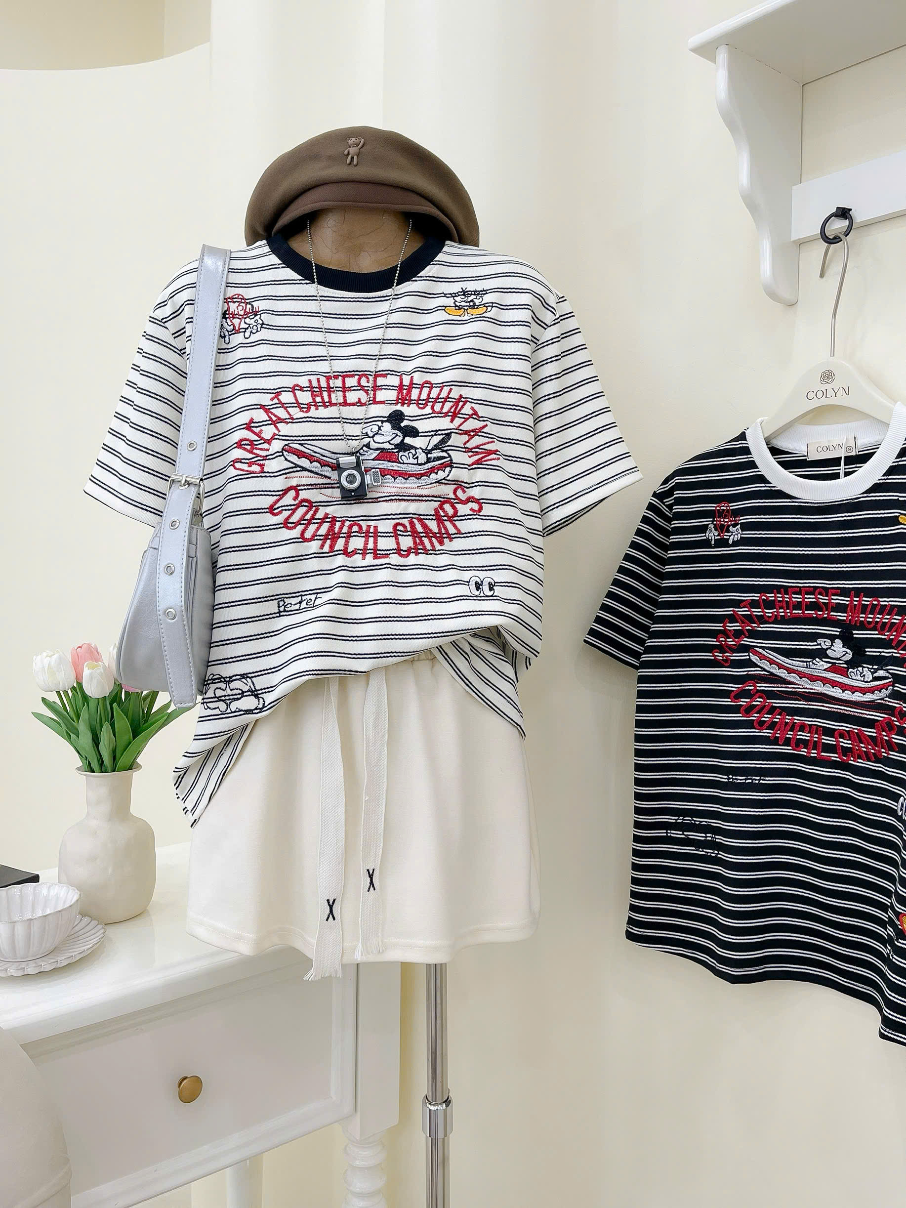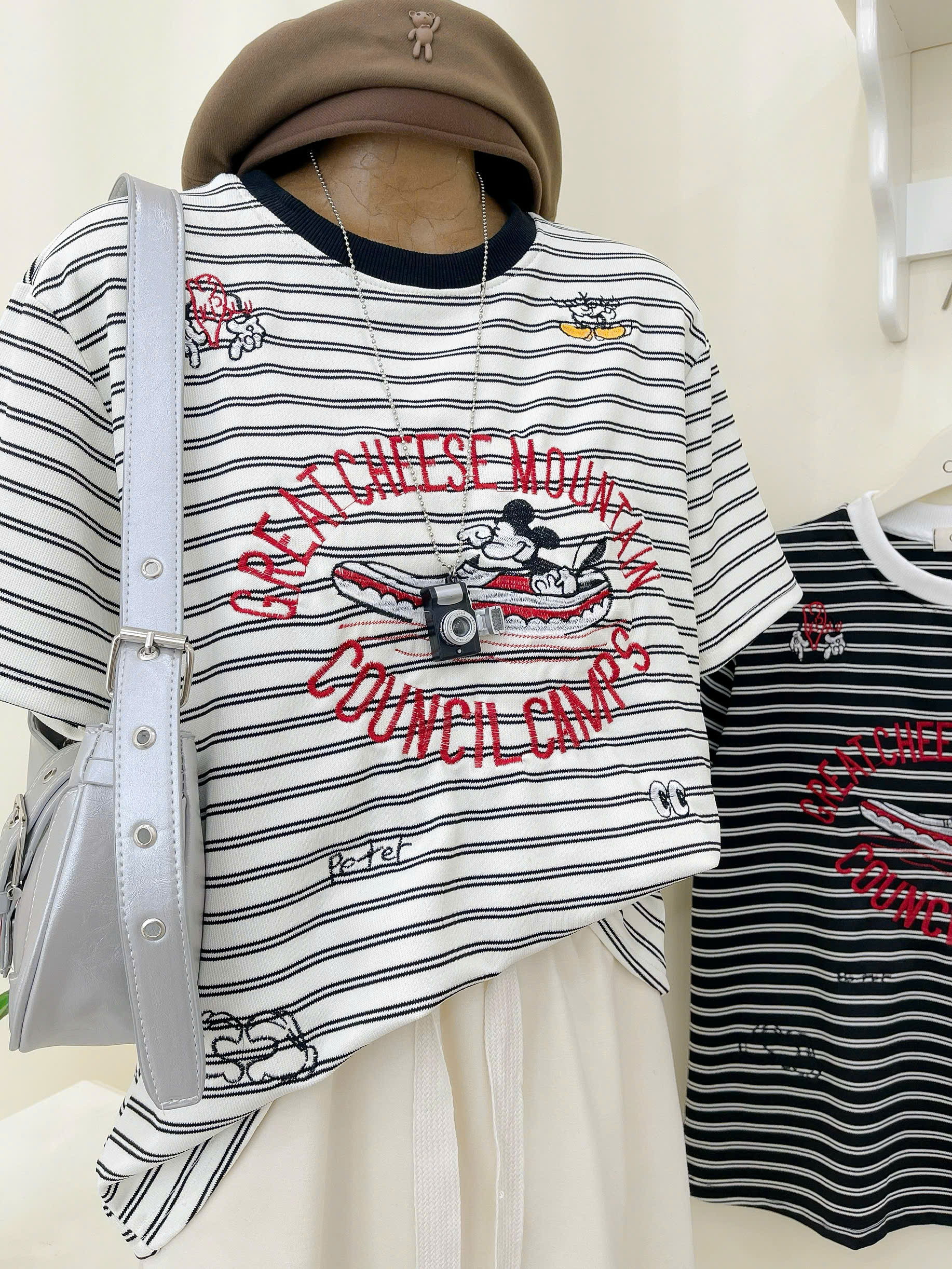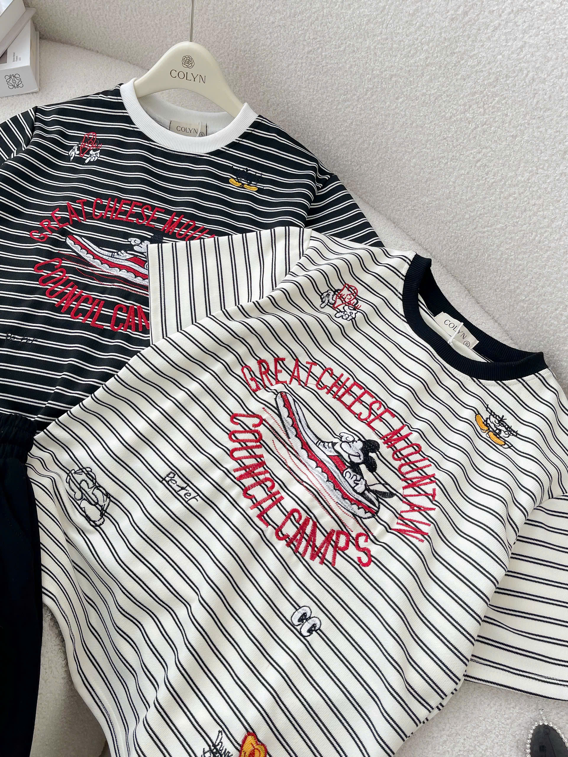 - Áo: Vải rib sọc, co giãn tốt, không kích ứng da khi mặc. Form áo oversize phối rib cổ. Áo thêu toàn bộ thân trước với hình thêu chuột Mickey.